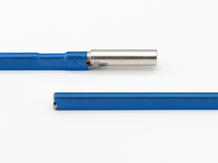 Geniale Dual-Action ohne großen Platzbedarf durch zwei gegeneinander arbeitende Stäbe. Die Mutter sitzt in einer Kapsel, die an den unteren Stab angeschweißt ist. Dreht man die Mutter im Uhrzeigersinn, wird der untere Stab gegenüber dem oberen Stab verkürzt - Der Hals biegt sich konvex. Dreht man die Mutter gegen den Uhrzeigersinn, drückt das Ende der Mutter von innen gegen die Kapsel - Der Hals biegt sich konkav. Der Einbau erfolgt in einer gerade Nut. So lässt sich der Halsstab auch in Hälsen mit schlanken Profilen verbauen.