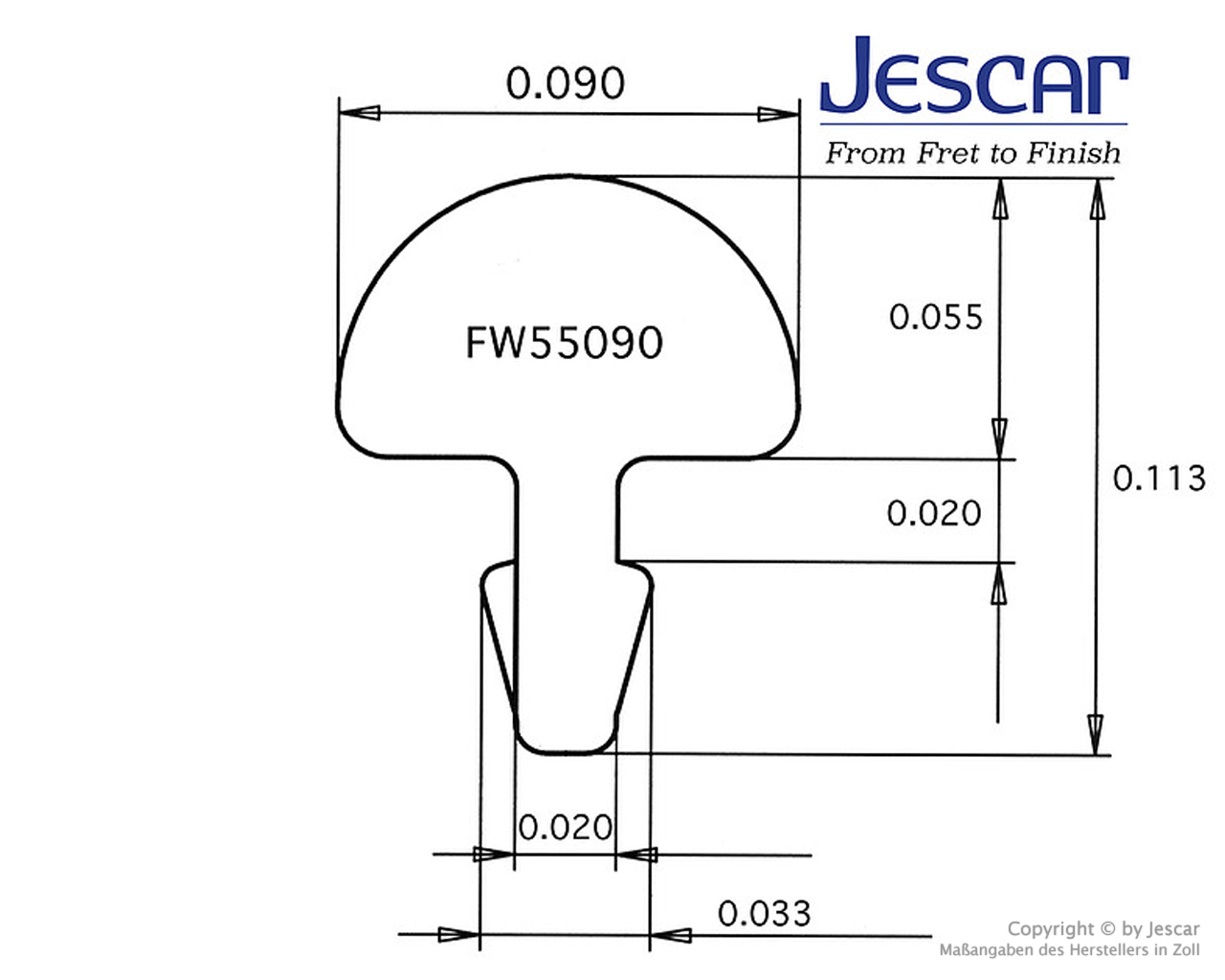 Klassischer 6105 Bund wie er häufig bei Gibson® und Fender® verwendet wird. Tall/narrow.