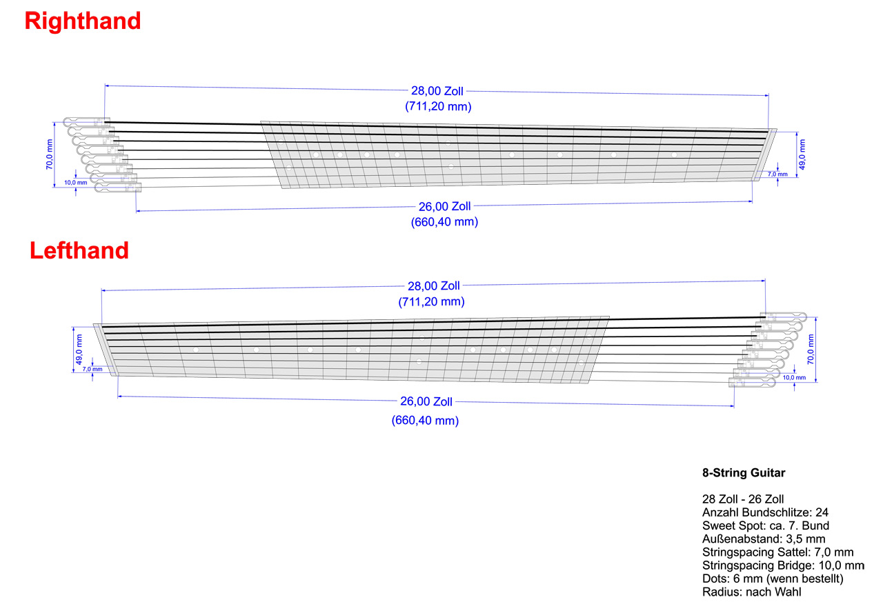 Multiscale Griffbrett Tiger Ebony 8-String Gitarre