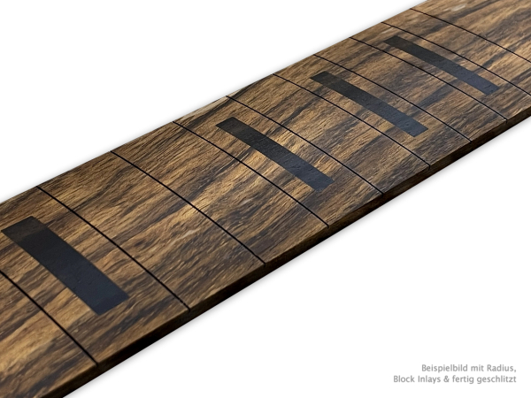 Sehr geradlinig gemaserter Ovangkol Griffbrett Rohling mit tollen Stehvermögen welcher aus einer kleinen Serie an Ovangkol Rohlingen hier angeboten wird. Der Grundpreis bezieht sich auf den unbearbeiteten Rohling wie abgebildet.