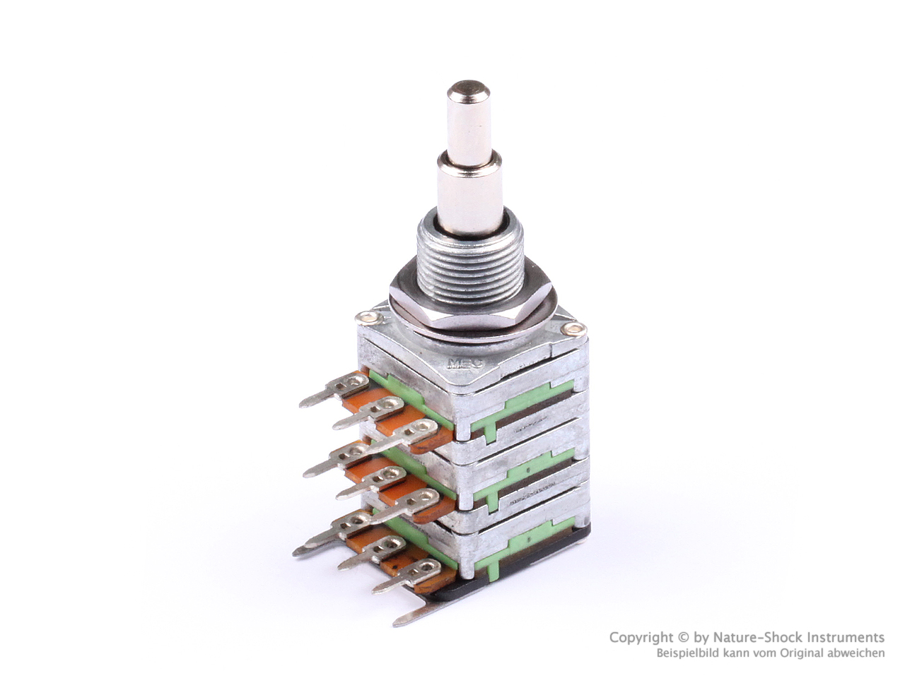 Dieser Poti wurde für verschiedene platzsparende Anwendungen entwickelt. Abhängig vom Widerstandswert und der Verhaltensweise kann er z.B. als Volume/Balance Poti eingesetzt werden.