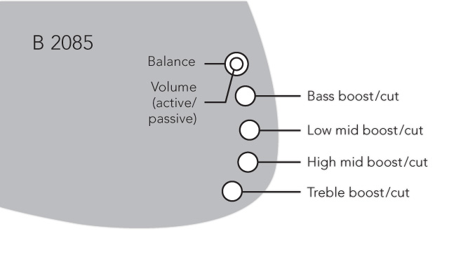 Der integrierte Impedanzwandler des TCM 4XM wandelt das hochohmige Pickupsignal um, so das keine kapazitiv bedingten Höhenverluste durch Instrumentenkabel auftreten. Sämtliche Elektroniken werden mit verdrahteten Potis, 9V Batterieclip, sowie einer Klinkenbuchse (mit Masseschalter) geliefert.